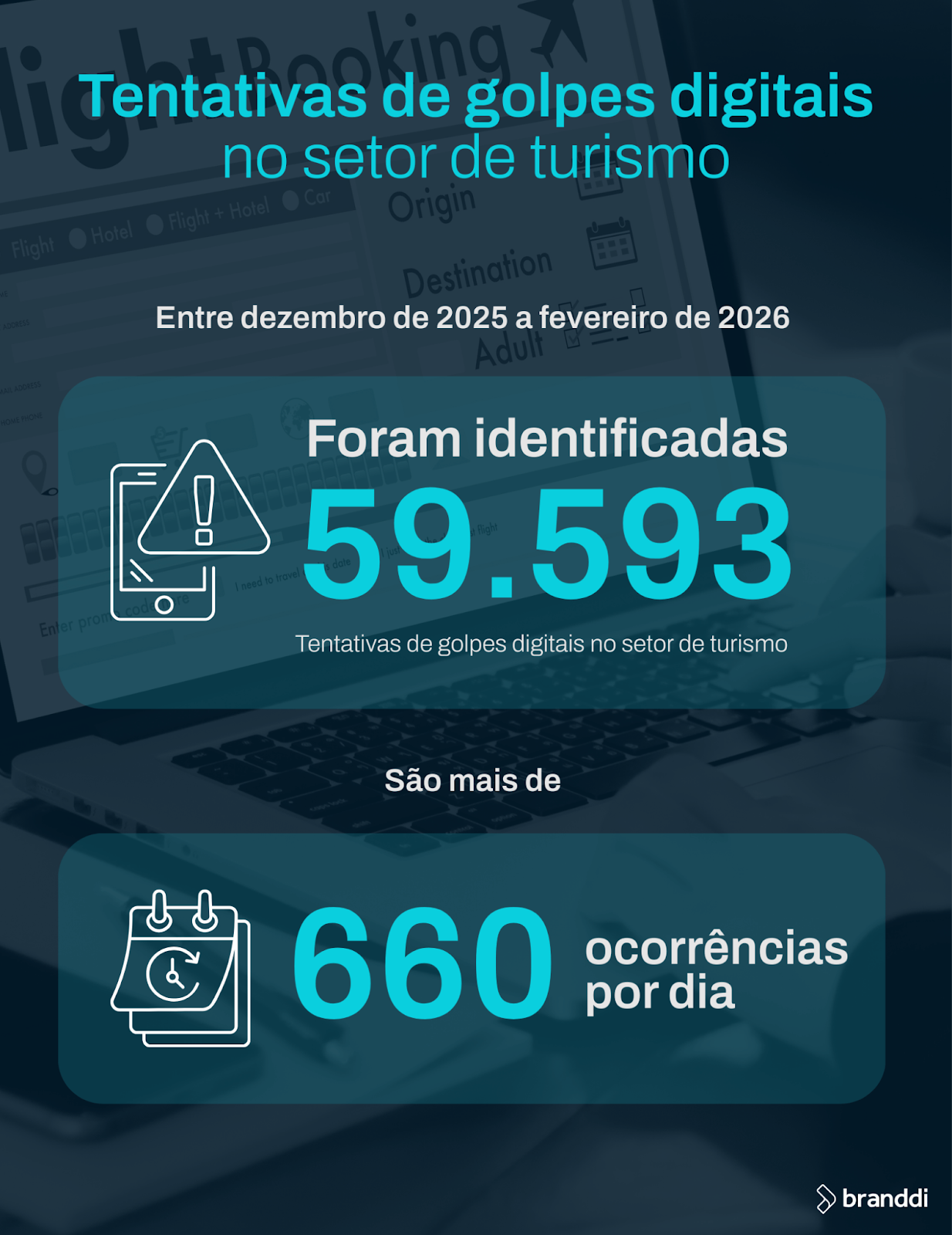 Dados internos da Branddi, especialista em proteção de marcas no ambiente digital, reforçam esse cenário. Entre dezembro de 2025 e fevereiro de 2026, foram identificadas 59.593 ocorrências de uso indevido de marcas do setor de turismo. O volume representa uma média de mais de 660 ocorrências por dia durante o verão.